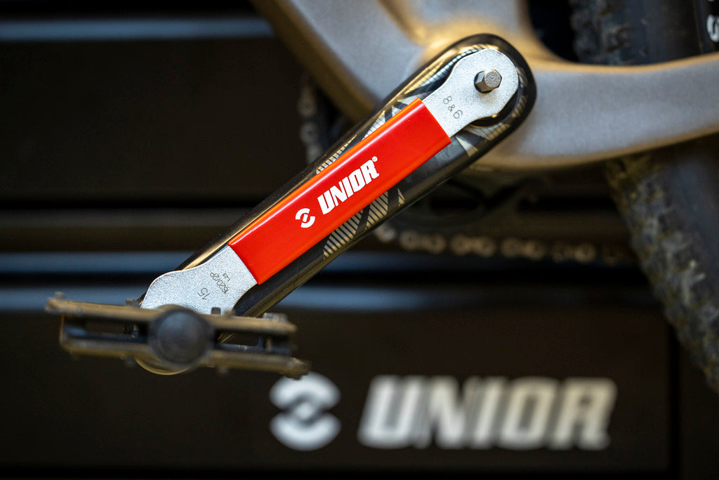 3-in-1 Pedal Wrench is a great tool for all your pedal maintenance needs. The compact design features an 15mm open end wrench, hex 8mm and hex 6mm bit, covering all the common pedal interfaces and ensuring compatibility with a wide range of pedals.