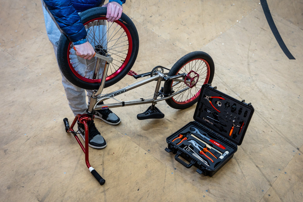 Joining our tool kit family, the BMX Kit contains a curated selection of tools that are perfect for working on your bike at home or away. Contained in the sturdy water and dust proof case are 43 tools each with their own space in laser cut foam trays. Each tool is of our usual professional standard and carries a limited lifetime warranty - this is a kit built to last.