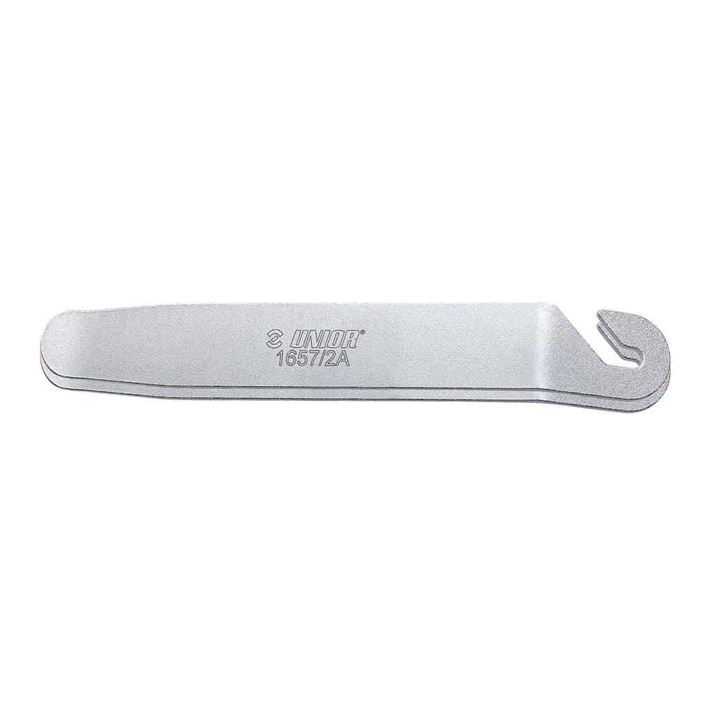 Like our plastic levers it includes a spoke hook so you can easily use multiple levers when you need to, and if you're using these, you probably will. The thin working edge helps to slide it under those stubborn tires, the 150mm length gives plenty of leverage for those tight beads, and of course the metal construction means you won't break it.
